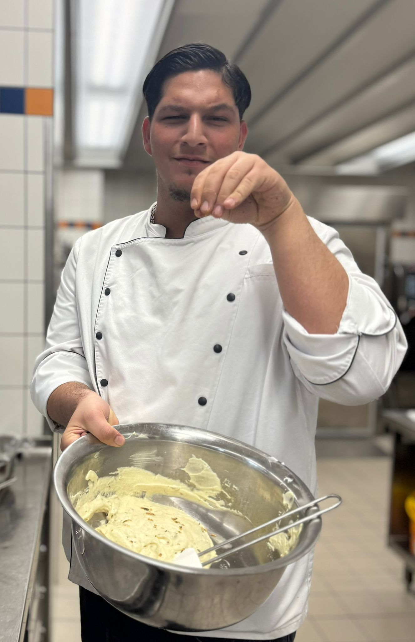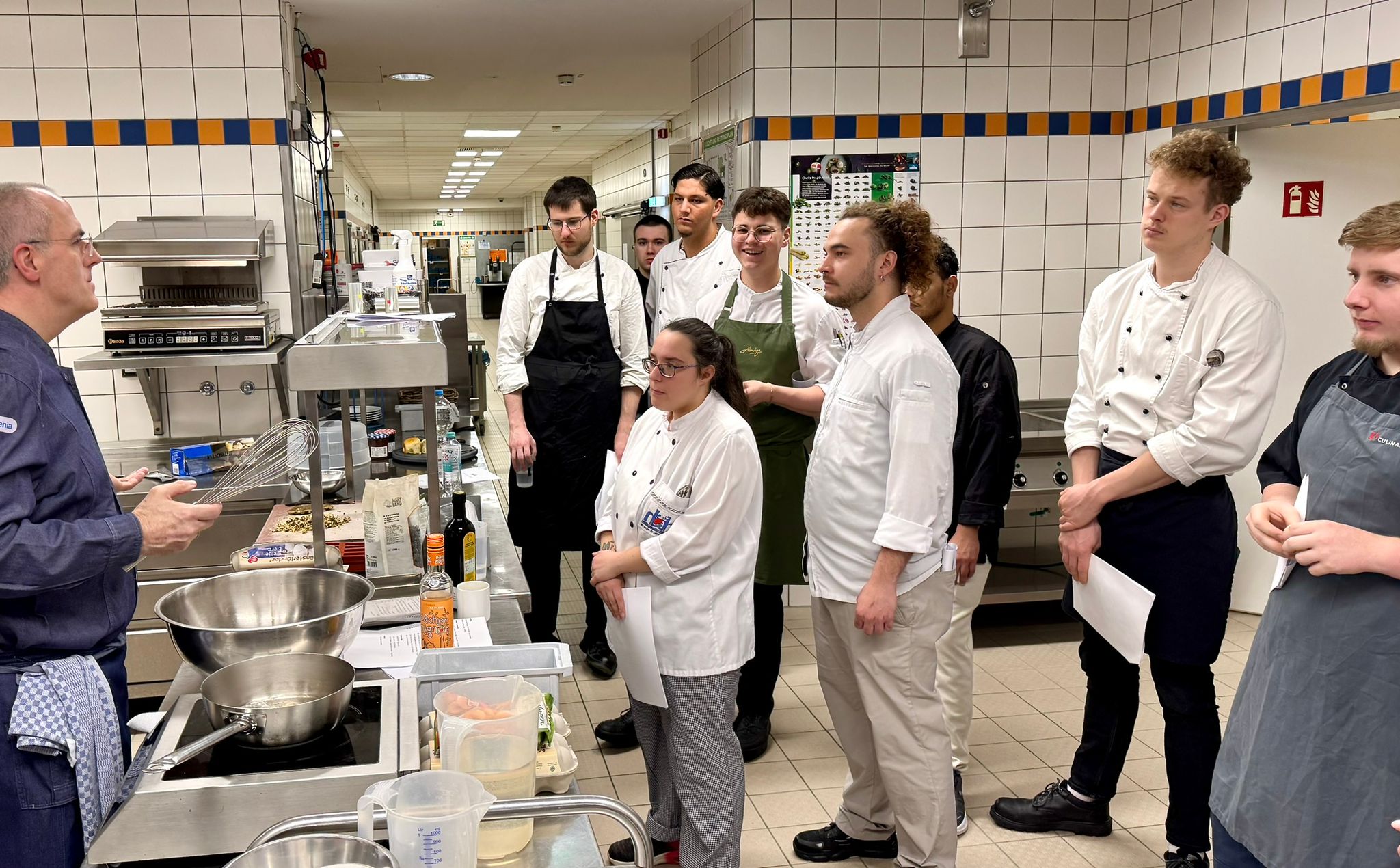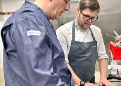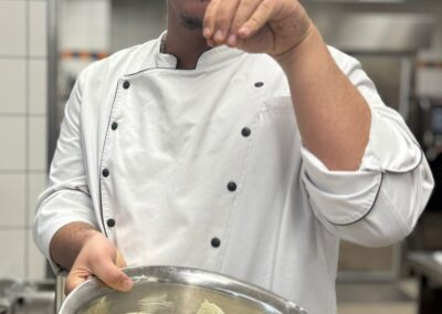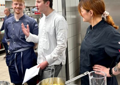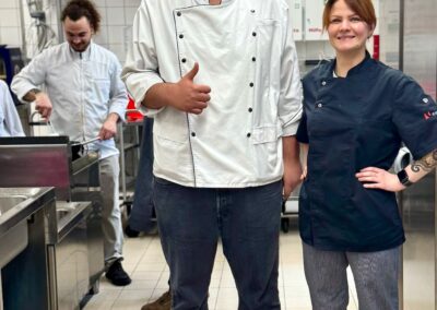 Ein weiterer besonderer Aspekt war die Durchführung in den Räumlichkeiten der Culinaria, die künftig auch als zweiter Prüfungsort genutzt wird. Die Teilnehmenden erhielten so die Möglichkeit, die professionelle Küchenumgebung kennenzulernen. Für optimale Rahmenbedingungen sorgte dabei Christopher Donner, Küchenchef der Culinaria.