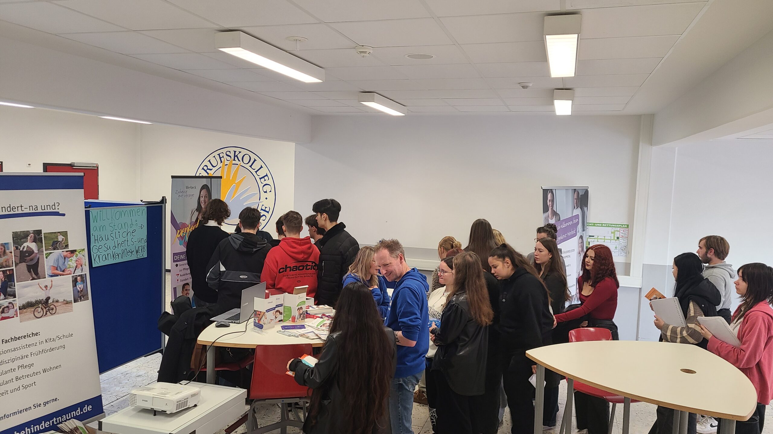 Kurz vor den Herbstferien fand in unserer Schule erstmals eine Ausbildungs- und Praktikumsbörse statt, speziell ausgerichtet auf Betriebe aus dem Bereich Gesundheit und Soziales. Damit passte das Angebot perfekt zum Profil unserer Schule, die genau diesen Schwerpunkt in vielen ihrer Bildungsgänge setzt.