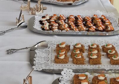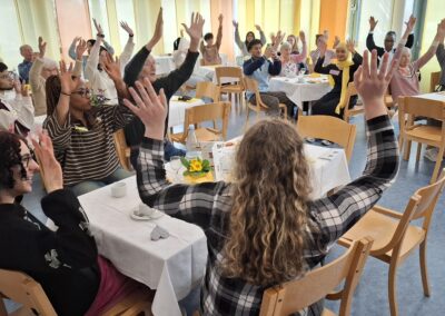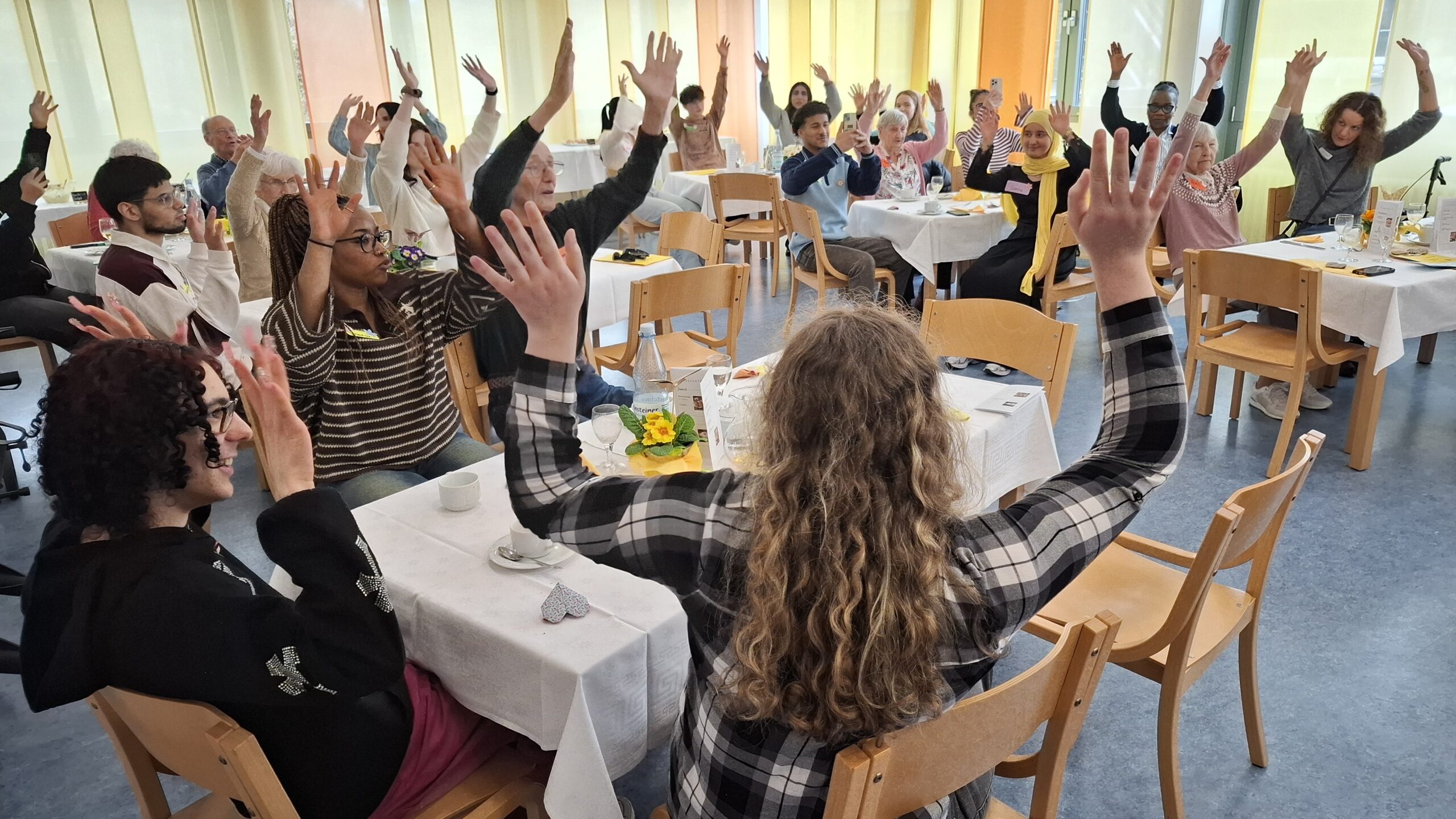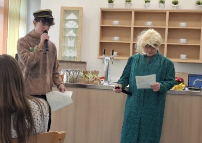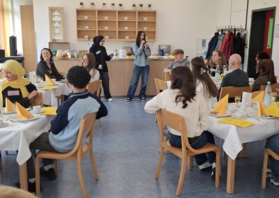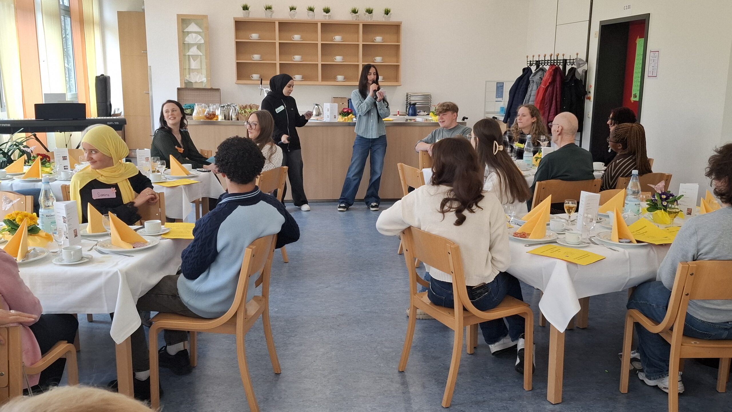 Mit viel Engagement hatten die Schülerinnen und Schüler ein abwechslungsreiches Programm auf die Beine gestellt. Ein liebevoll vorbereitetes Buffet mit Speisen, die zuvor im Unterricht zubereitet worden waren, sorgte für kulinarische Highlights. Darüber hinaus brachten Spiele, ein unterhaltsamer Sketch sowie ein kleines Theaterstück die Gäste zum Lachen und Mitmachen. Gemeinsame Lieder rundeten die Veranstaltung stimmungsvoll ab.