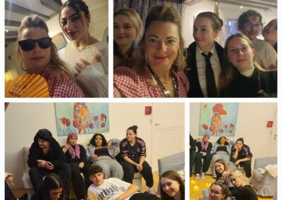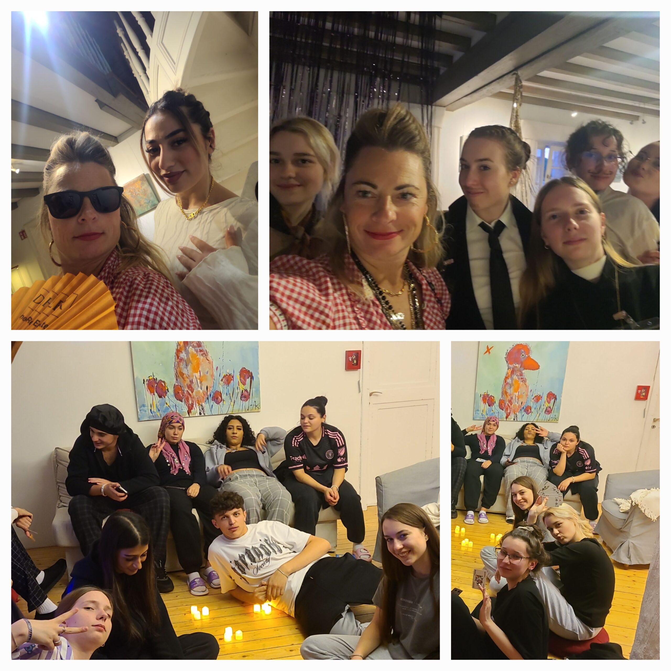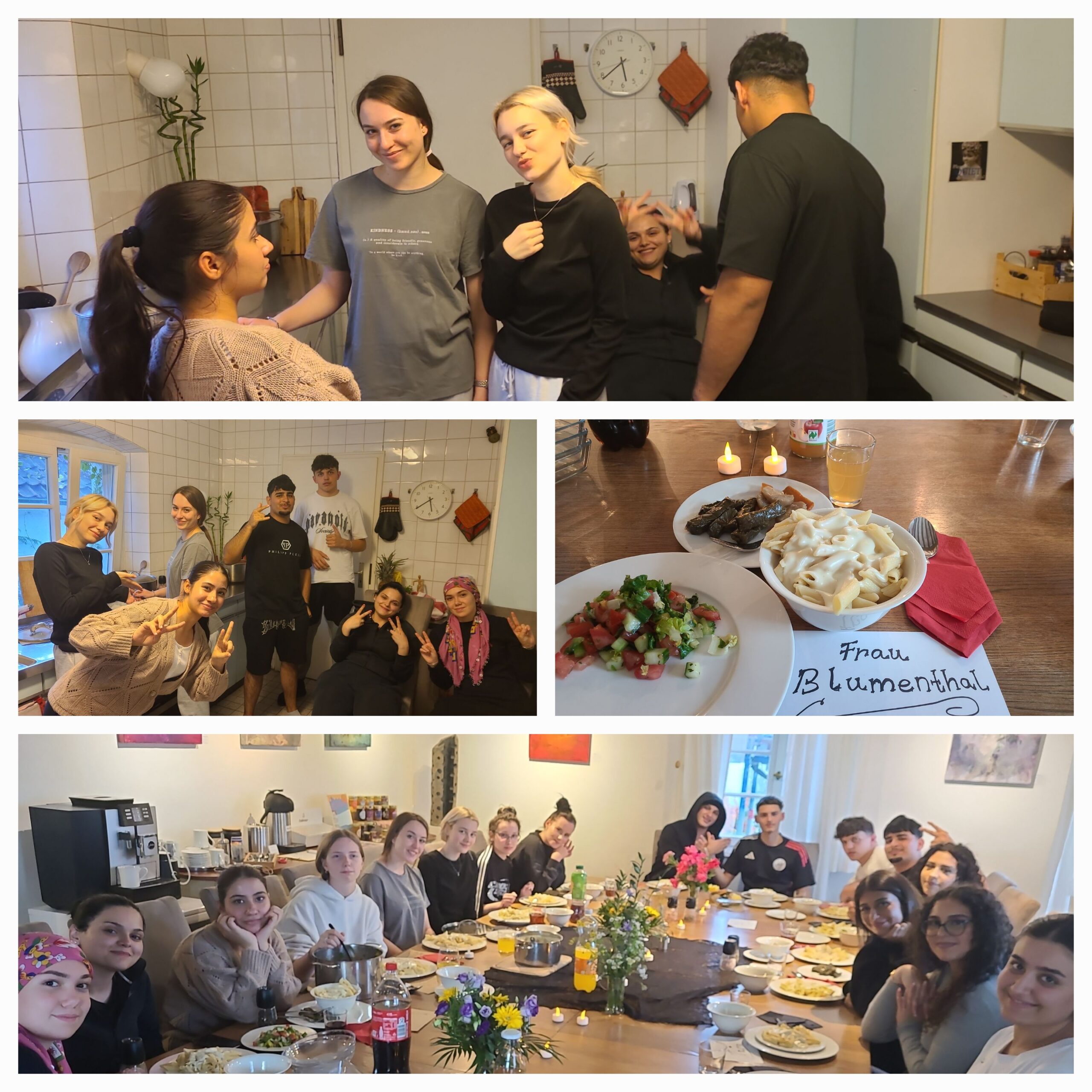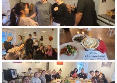 So fuhren wir mit der Berufsfachschulklasse BFS2G1 in diesem Jahr an den Rhein nach Leverkusen. Nach einem gigantischen Einkauf von Lebensmitteln, mussten sich alle erst einmal in den Zimmern organisieren und einrichten. Der Abend versprach schon bei dem Anblick in den Kühlschrank ein tolles Essen, welches die Schülerinnen und Schüler in den vergangenen Wochen in Teams geplant hatten zu kochen. Der Tisch wurde bereits nach einem Spaziergang am Rhein dekoriert und die Klasse zeigte ihr Können, gemeinsam ein tolles, schmackhaftes Gericht zu kredenzen sowie im Anschluss zu spülen und aufzuräumen. Am nächsten Abend wurde noch aufwendiger gekocht, trotz des etwas anstrengenden Tages in Leverkusen, wo die Klasse gemeinsam den Tag verbrachte. Beim Krimidinner am Abend überraschte diese dann mit kreativen Outfits und so mancher mit außergewöhnlich schauspielerischen Fähigkeiten. Tatsächlich wurde der Schuft der Geschichte entlarvt und so einige gingen an diesem Abend mit einem kleinen Preis für das beste Kostüm oder besonderes Ermittlungsgeschick ins Bett.